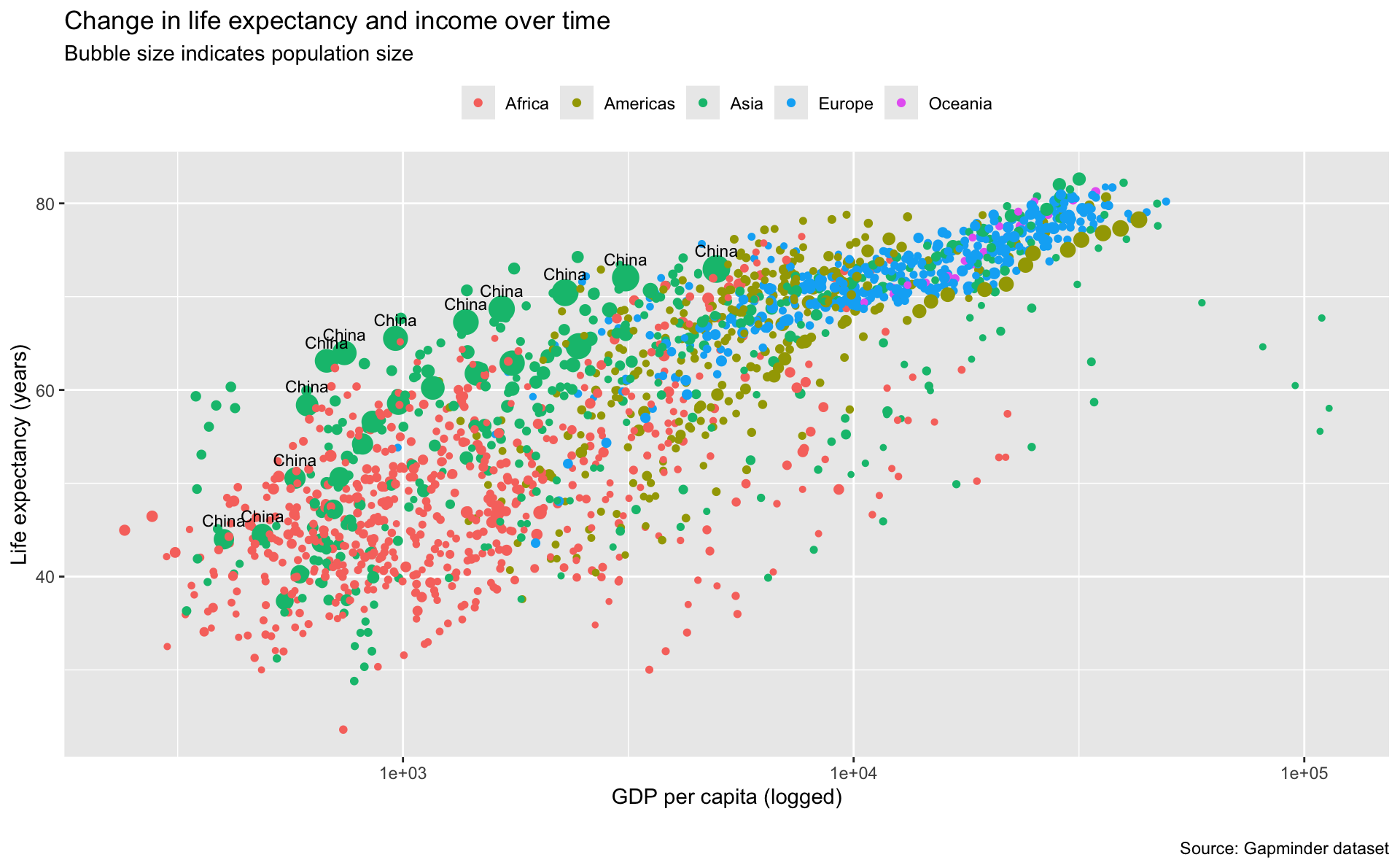 geom_text(data=gapminder %>% filter(country == 'China'),