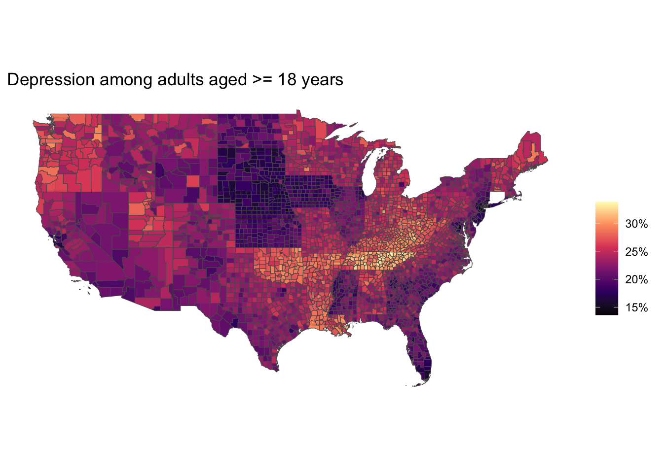 ggtitle('Depression among adults aged >= 18 years') +