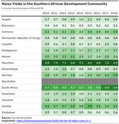 Visualizing agricultural data using conditionally formatted tables