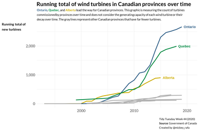 Visualizing the expansion of wind turbine projects in Canada over time