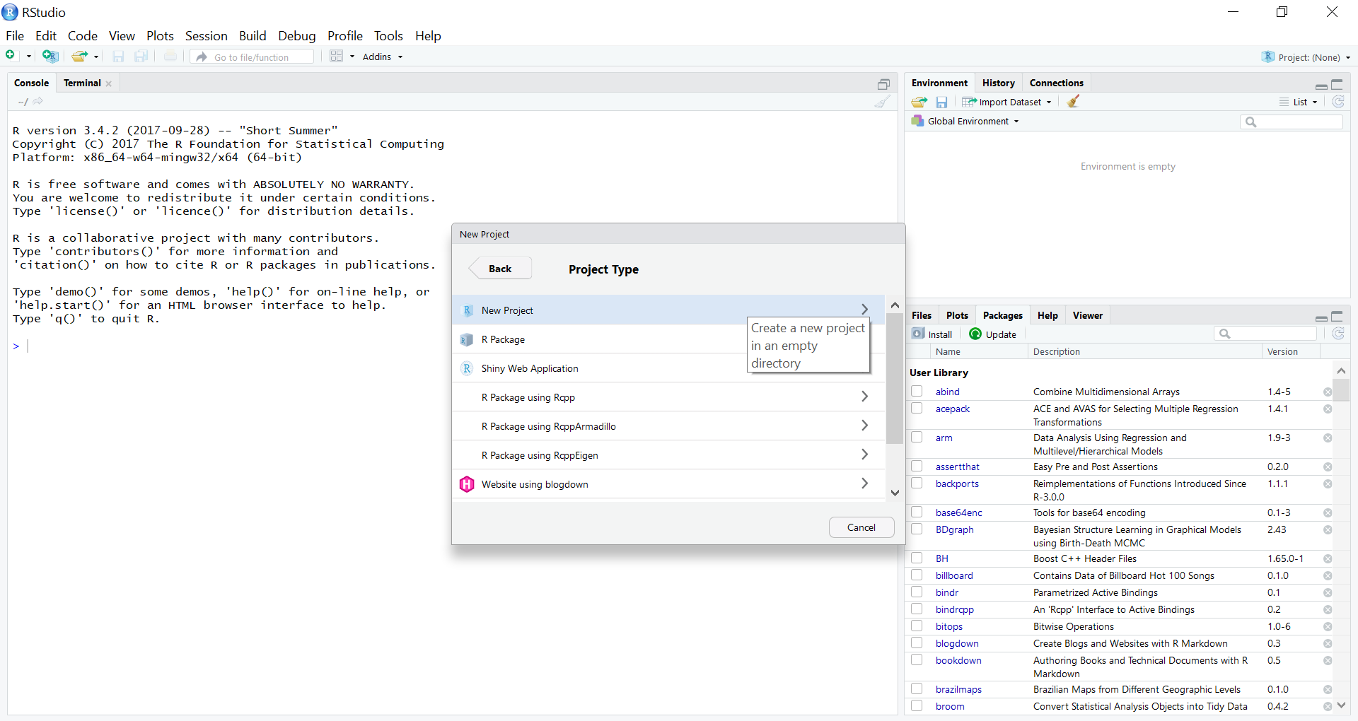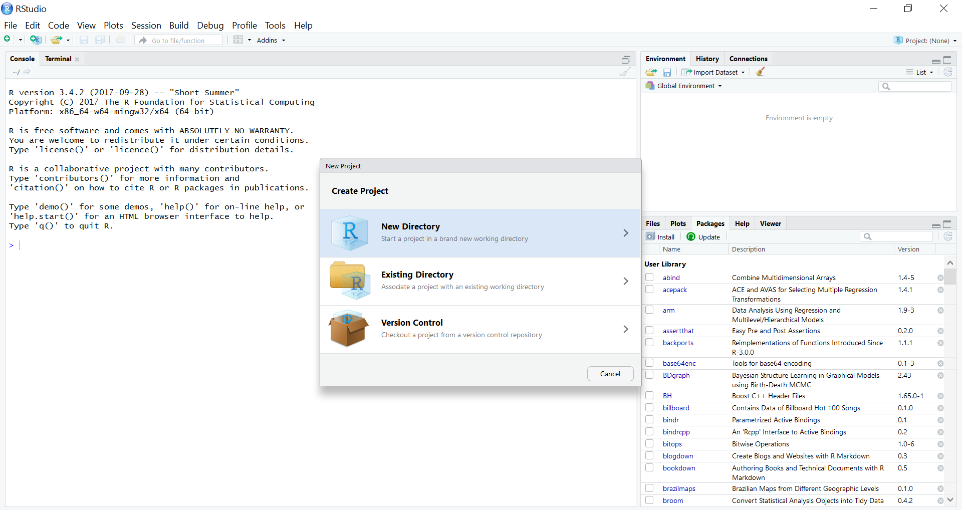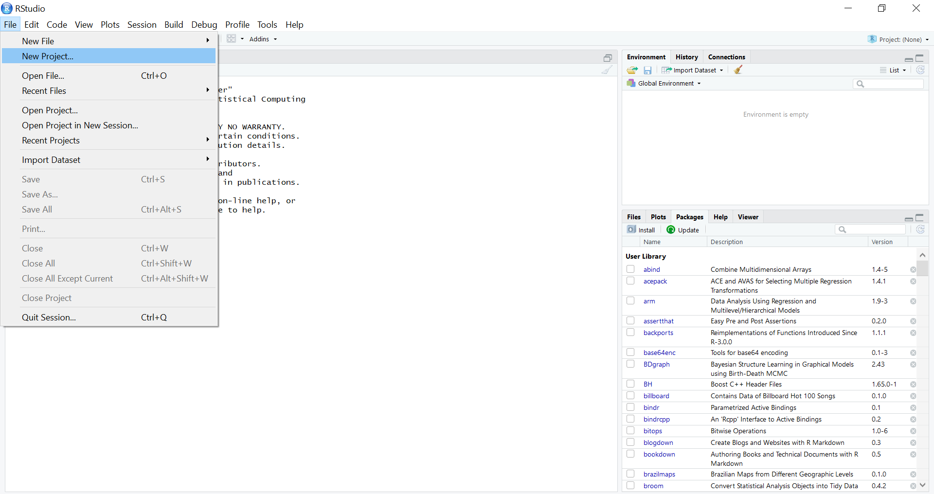 These steps have established a directory on your computer where your R project lives. This is a very good practice to keep when you are starting a new analysis. You will keep all related files in this project folder, and R will know that this is your working directory (where all files relevant to your project are saved).